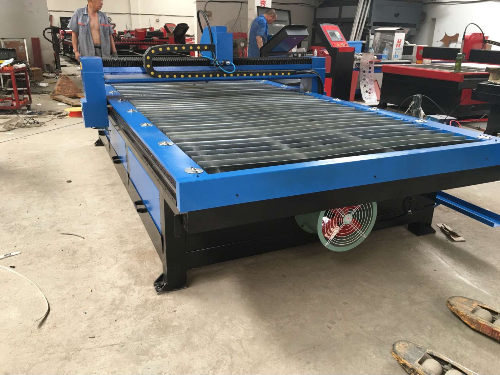 ◆有的廠家生產(chǎn)的數(shù)控等離子切割機(jī),無(wú)環(huán)保底槽與排煙系統(tǒng),加工現(xiàn)場(chǎng)煙塵彌漫,吸入人體后造成肺部疾病,給工作人員健康帶來(lái)危害。